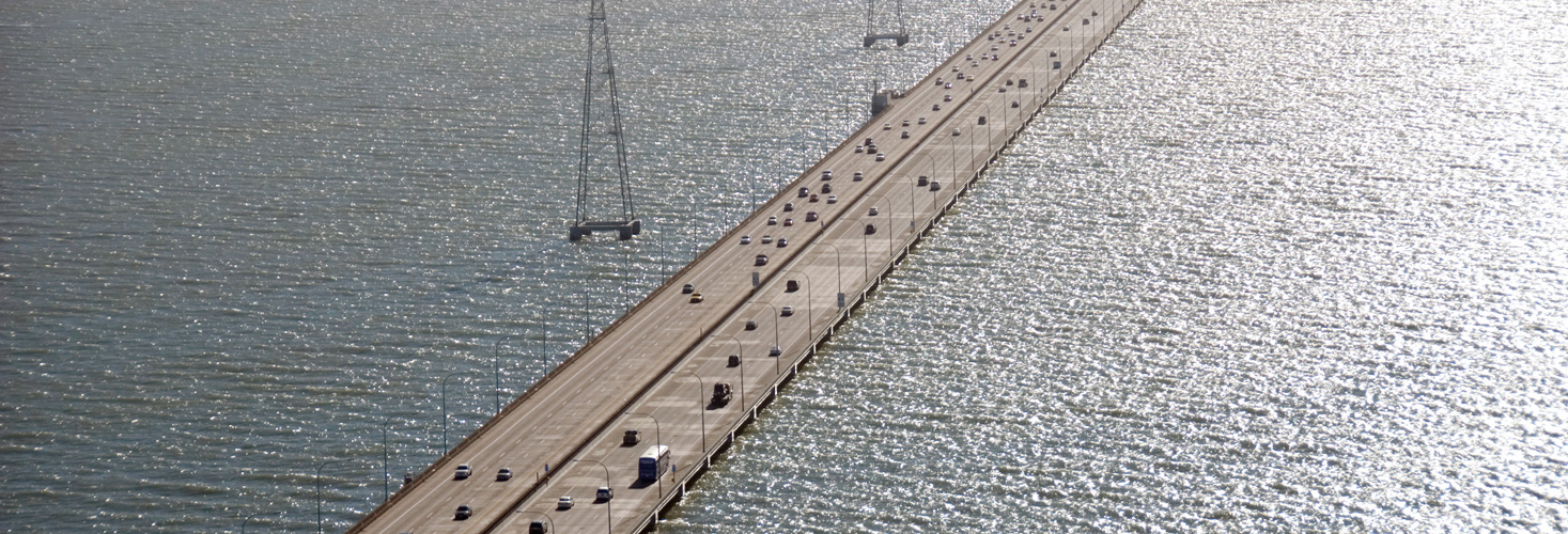 The San Mateo-Hayward Bridge crosses the San Francisco Bay along State Route 92 (SR-92) and links the cities of Foster City and Hayward. Drivers pay tolls in the westbound direction on the eastern side of the bridge.